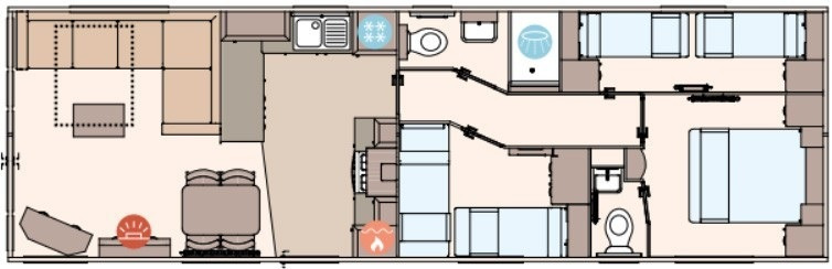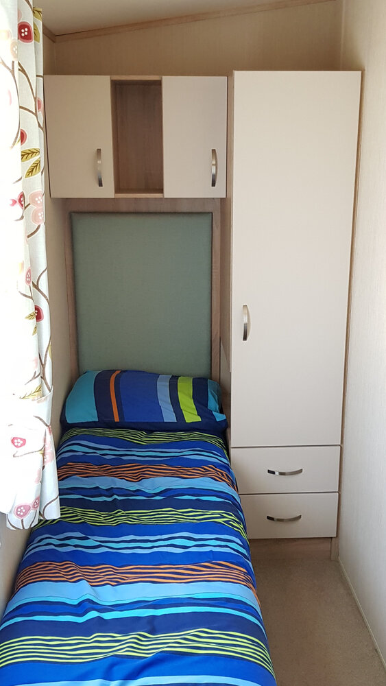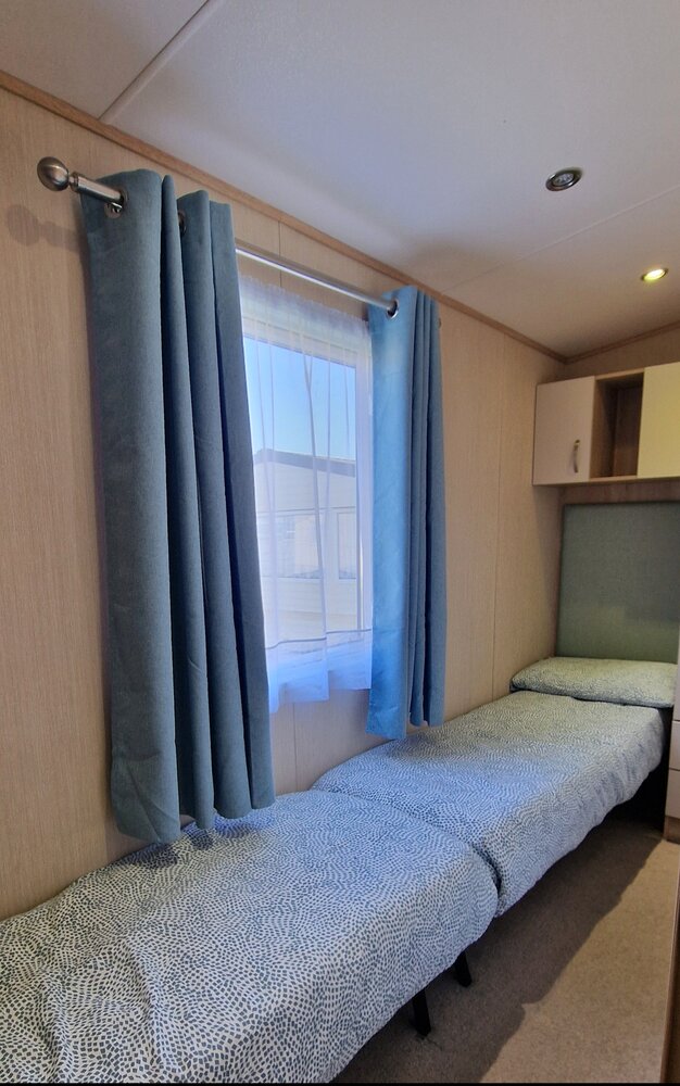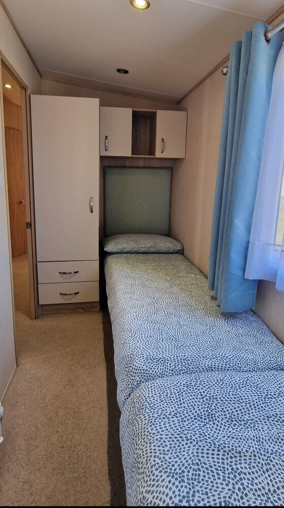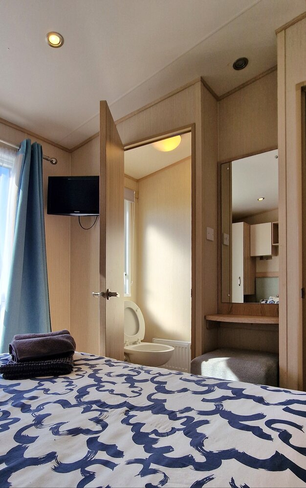 Large open plan living area, comfy seating with a separate dining area. It has a good size kitchen with everything needed for your stay. There is also a large veranda on the caravan. All the bedrooms have fitted wardrobes. Shower room, wash basin and toilet and there is an additional toilet in the caravan. To keep you entertained in the caravan there is a TV