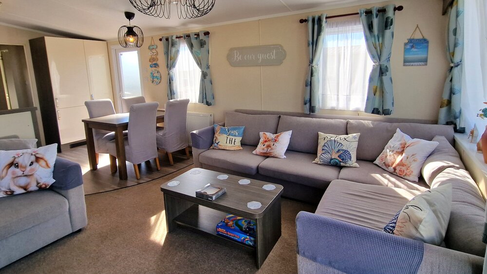 Step inside and enjoy a bright, open-plan living area, a well-equipped kitchen for easy self-catering, and plenty of space to relax after a day of fun. The caravan offers comfort and convenience in one of the UK’s most popular holiday destinations.