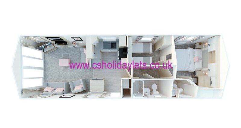 Very spacious 2 bed caravan, large living area with patio doors leading onto balcony, close to the large play park.