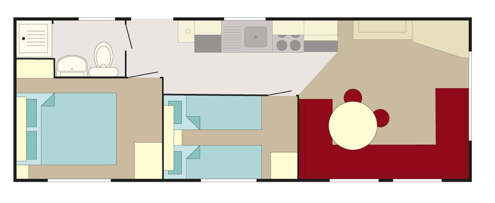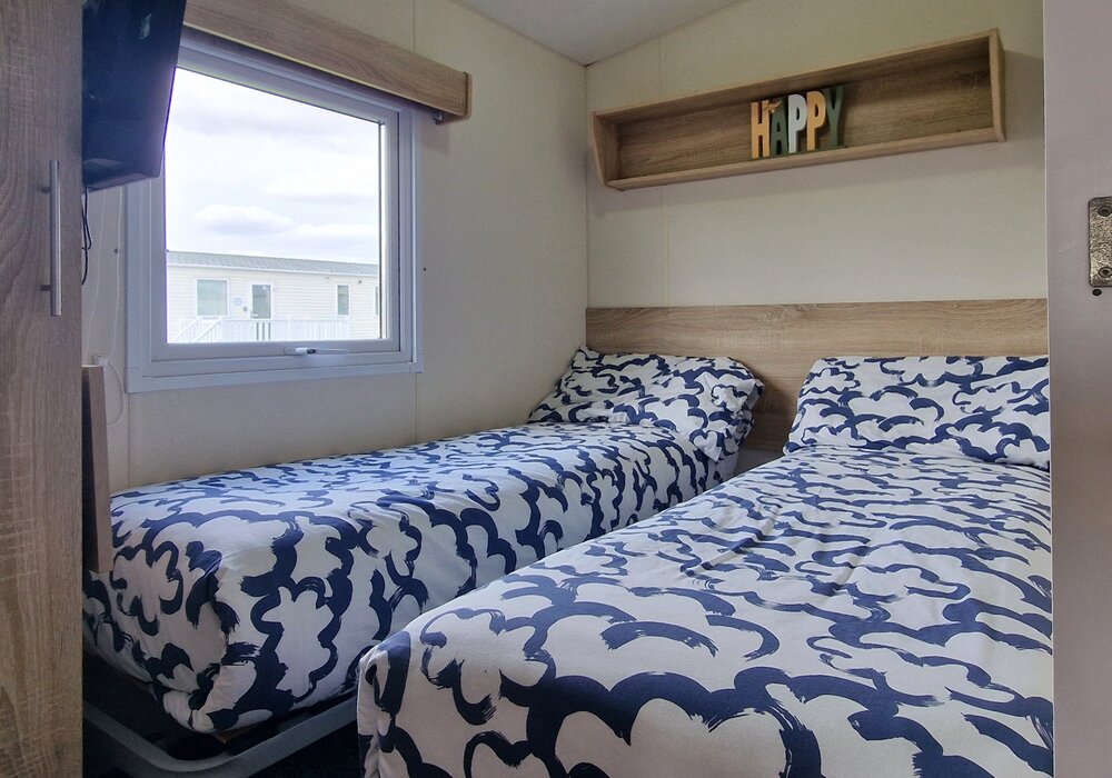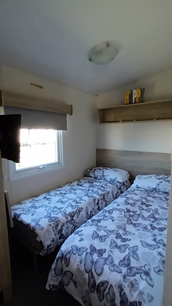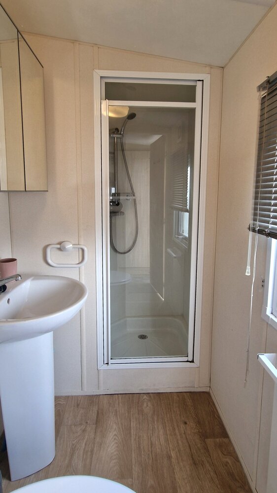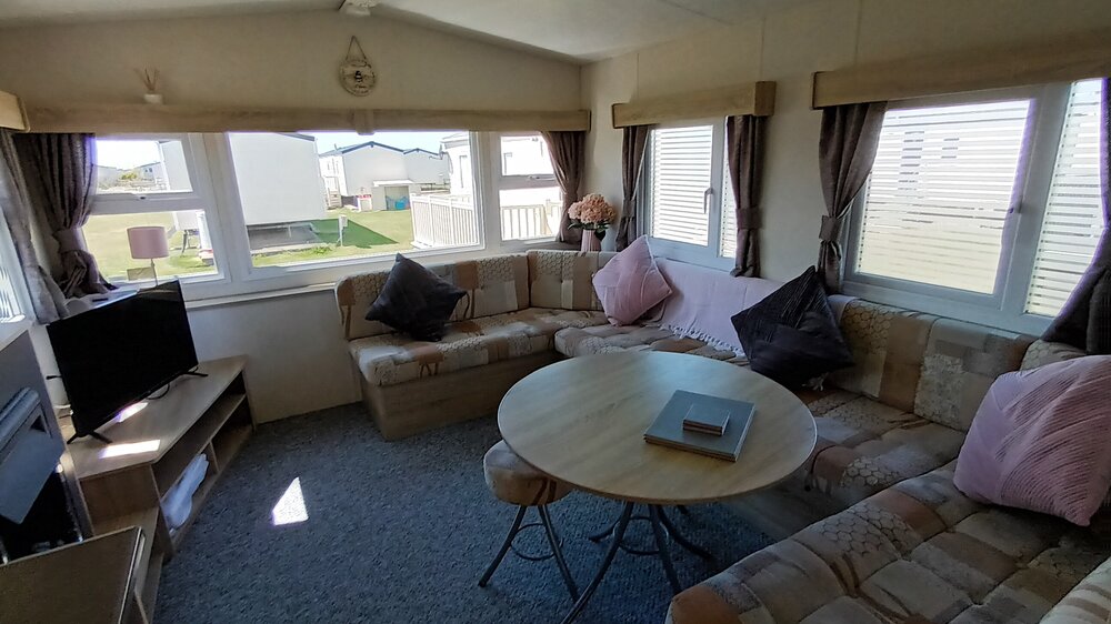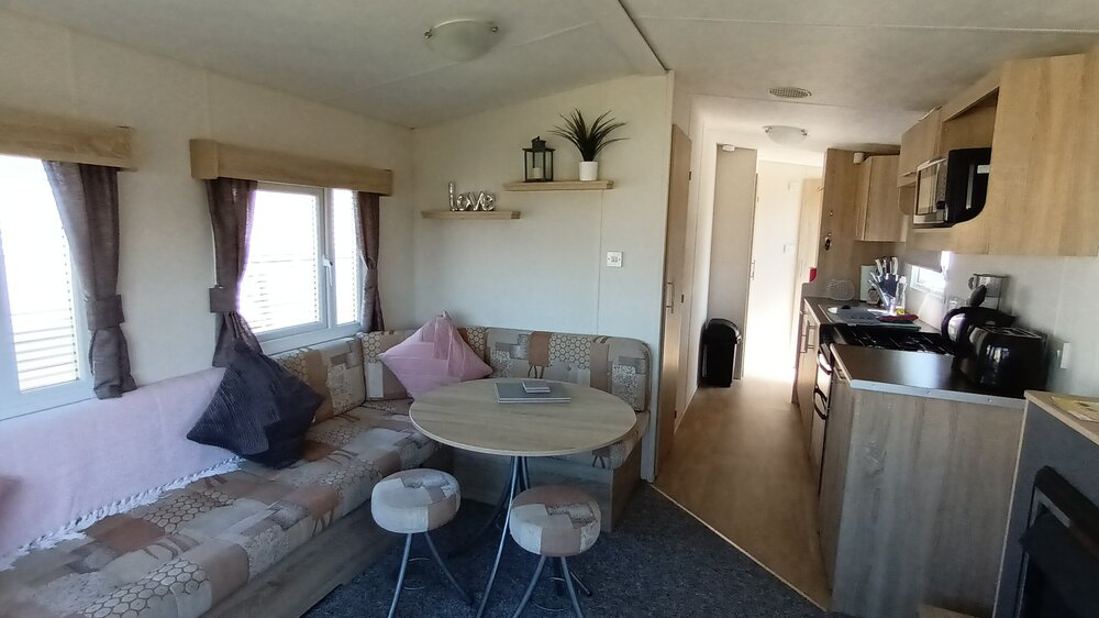 Open plan living area, comfy seating with a separate dining area. It has a good kitchen with everything needed for your stay. All the bedrooms have fitted wardrobes. Shower room, wash basin and toilet. To keep you entertained in the caravan there is a TV