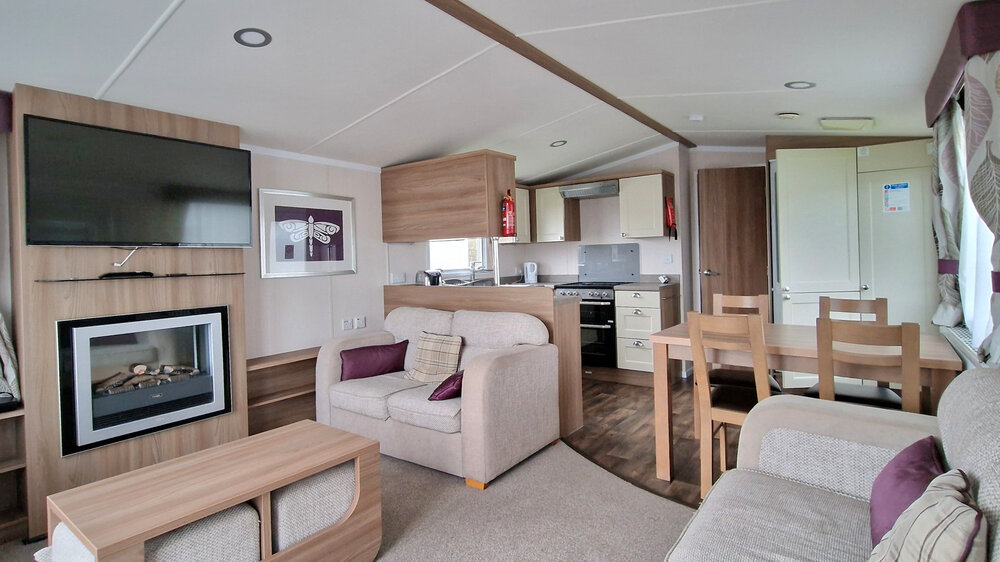 This Swift Bordeaux is a larger sized caravan measuring 38ft x 12 ft giving 42m² of living space