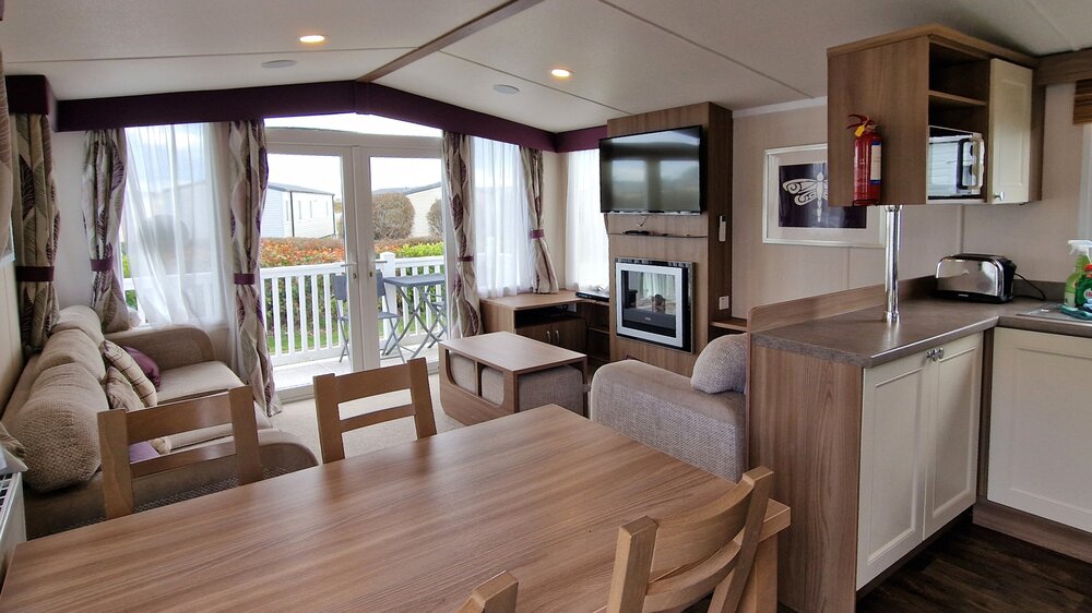 This Swift Bordeaux is a larger sized caravan measuring 38ft x 12 ft giving 42m² of living space